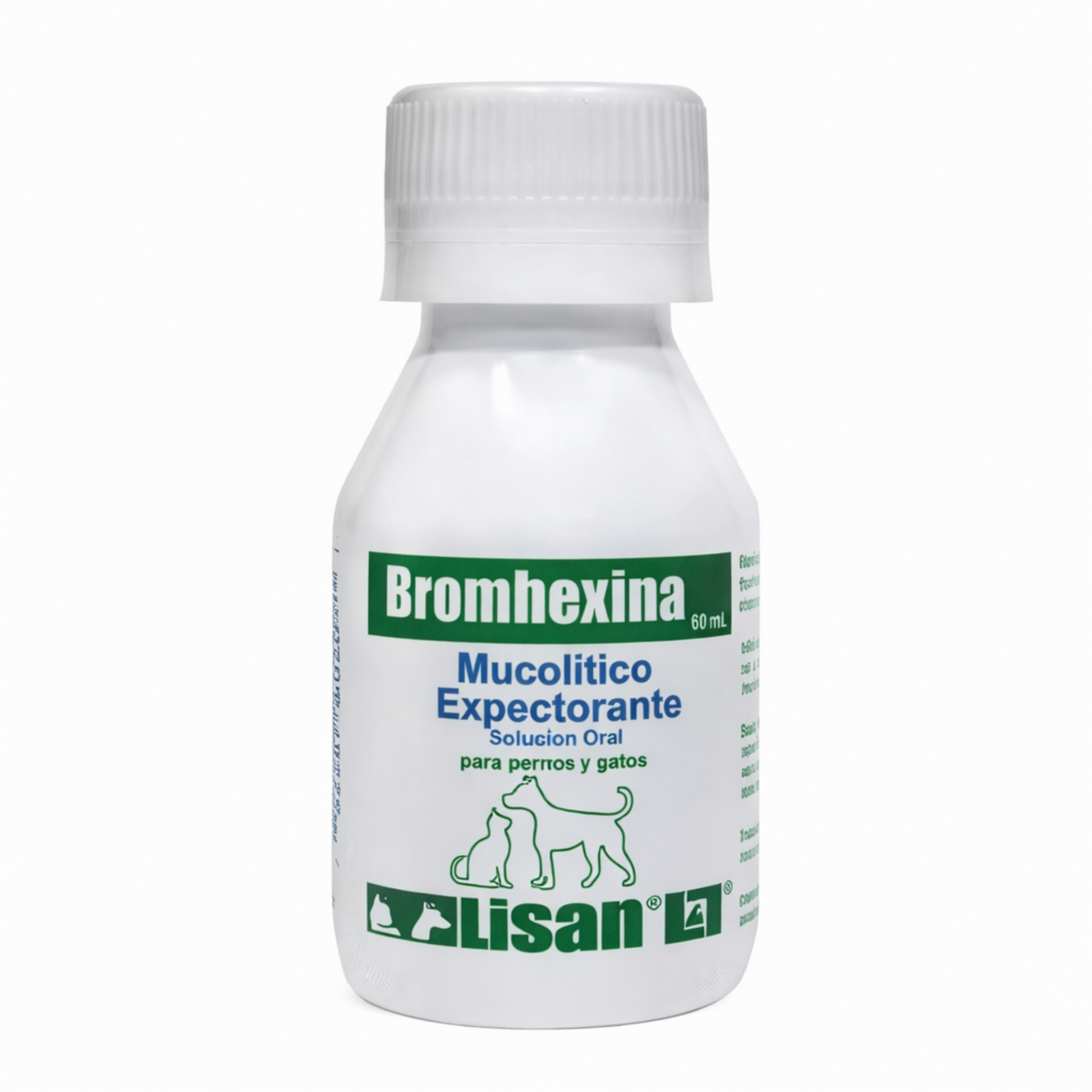Bromhexina es un medicamento veterinario de acción mucolítica y expectorante, indicado para el tratamiento de afecciones respiratorias en perros y gatos asociadas a acumulación de moco.