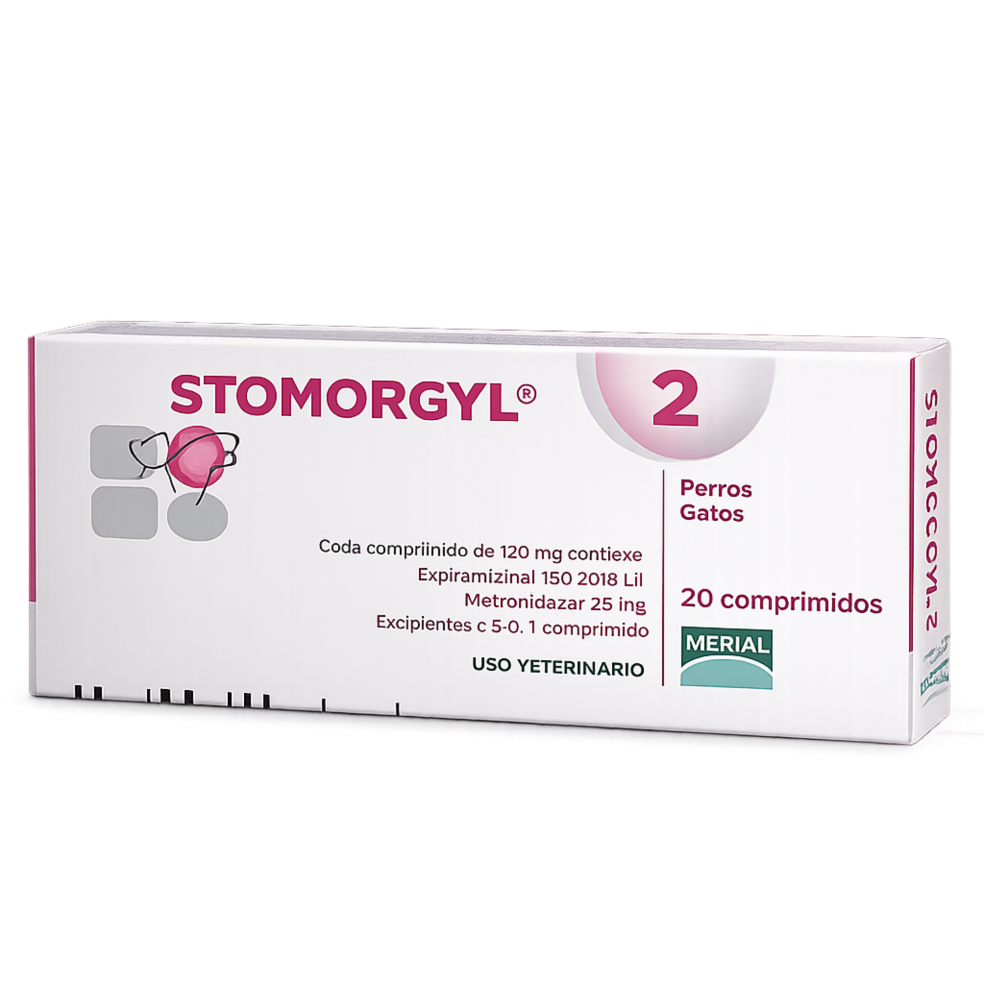 Stomorgyl se presenta en tabletas de administración oral, lo que facilita el ajuste de la dosis según el tamaño del paciente y la concentración seleccionada. Es un medicamento ampliamente utilizado en la práctica veterinaria para el manejo integral de infecciones bucales.